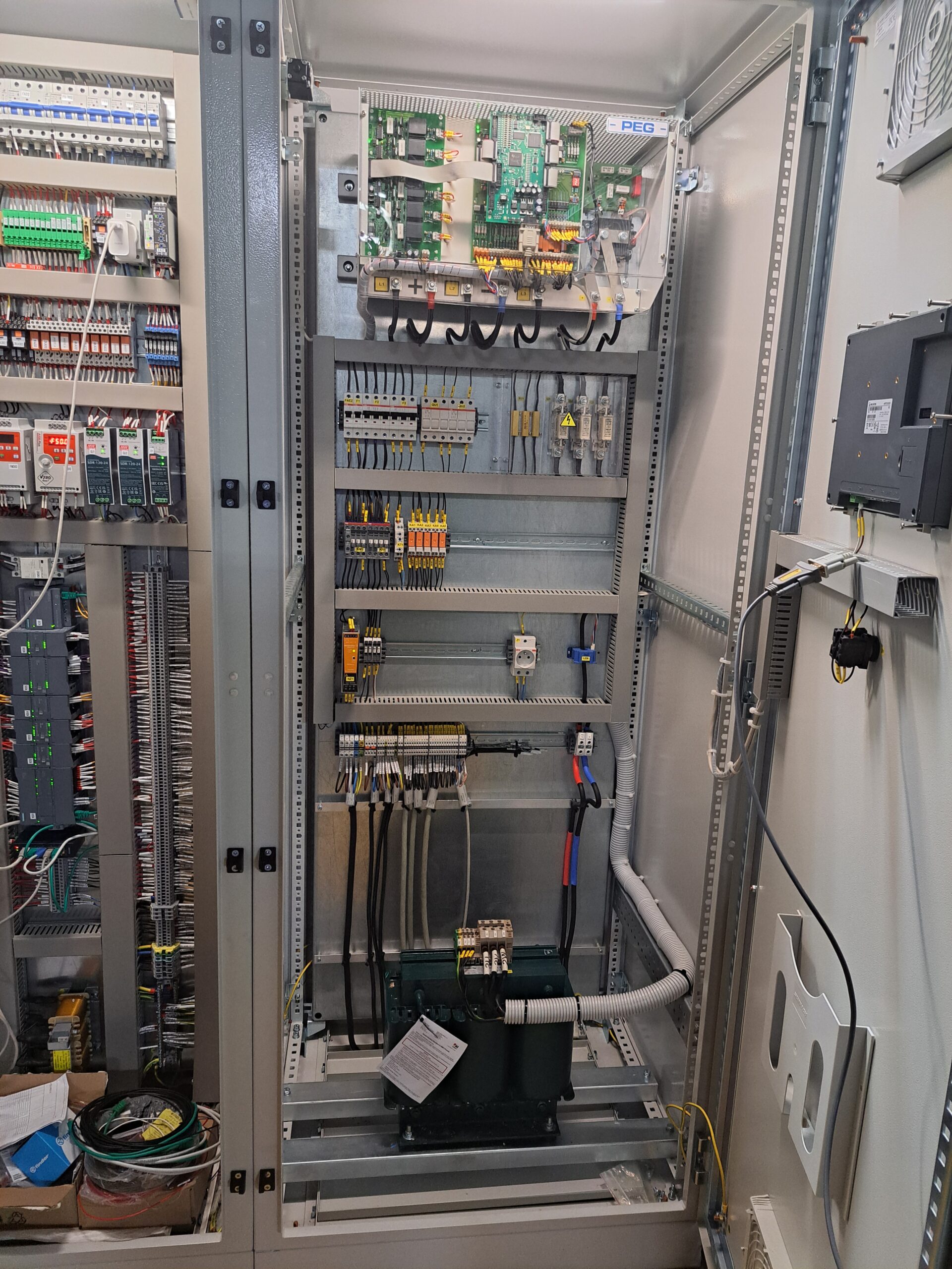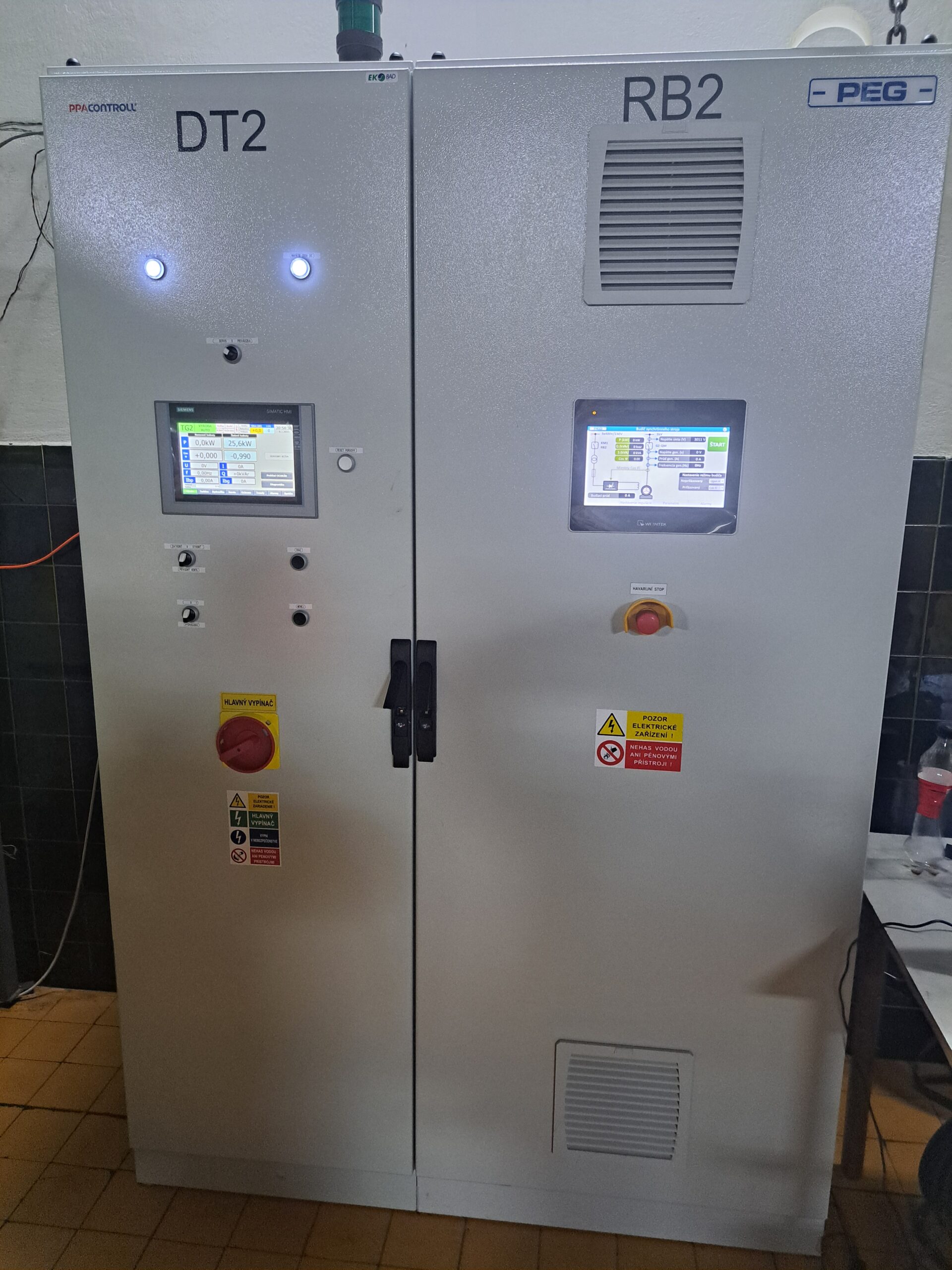 Rozsah akce – projekt, dodávka měniče a regulátoru + ovládací SW + visu, výroba rozvaděče, oživení.